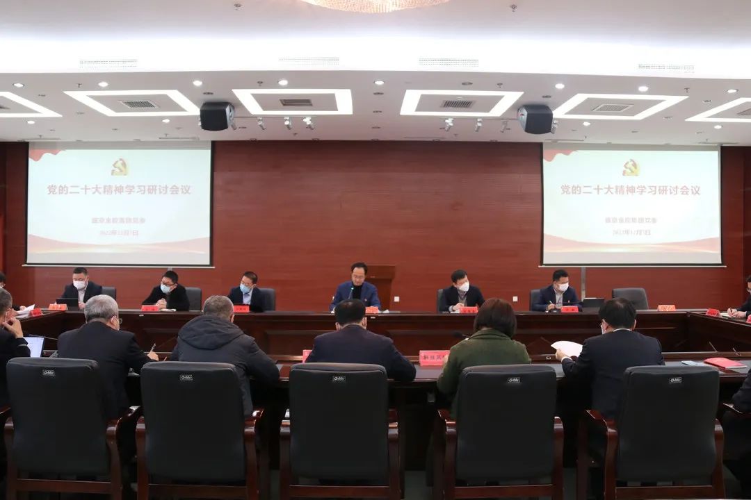2022年12月7日,,威尼斯9499登录入口金控集团召开党委理论学习中心组(扩大)学习聚会,,专题学习党的二十大精神。。。。集团党委书记、董事长邵文龙主持聚会并作事情安排,,集团向导班子成员、有关子企业认真人围绕党的二十大报告提出的新头脑新看法、作出的新安排新要求,,连系现实事情钻研讲话。。。。