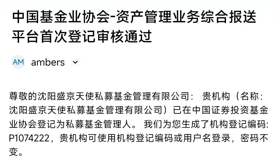 沈阳威尼斯9499登录入口天使私募基金治理有限公司喜过中基协基金治理人挂号审核