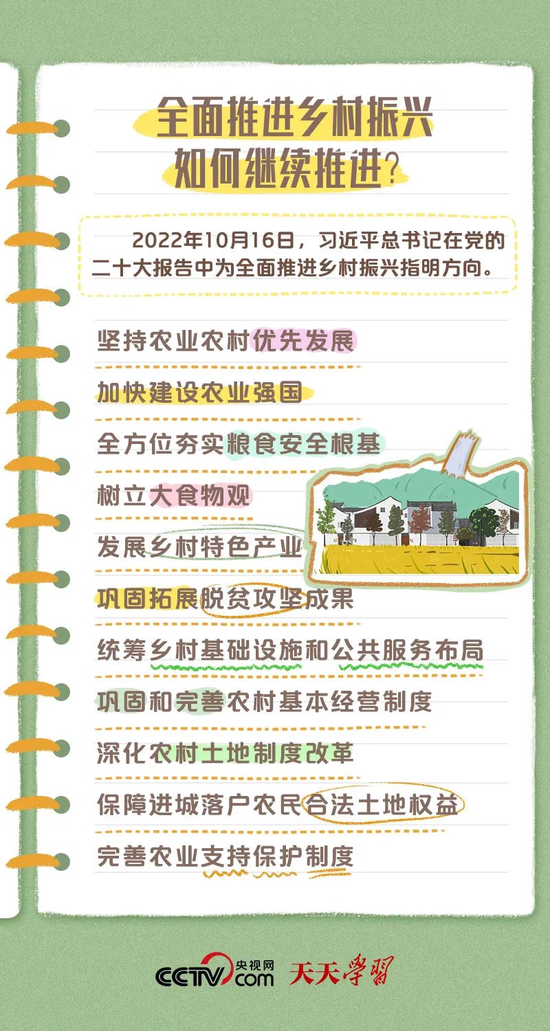 民族要再起,,,,,墟落必振兴。。。。习近平总书记在党的二十大报告中指出,,,,,周全建设社会主义现代化国家,,,,,最难题最沉重的使命仍然在农村。。。。党的二十大终结不到一周,,,,,总书记来到陕西延安、河南安阳两地考察。。。。总书记在考察中强调,,,,,要周全学习贯彻党的二十大精神,,,,,坚持农业农村优先生长,,,,,发挥延安精神和红旗渠精神,,,,,牢靠拓展脱贫攻坚效果,,,,,周全推进墟落振兴,,,,,为实现农业农村现代化而不懈斗争
