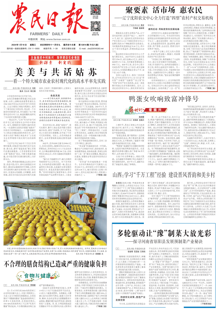 2024Äê1ÔÂ10ÈÕ£¬£¬¡¶Å©ÃñÈÕ±¨¡·Í·°æ¿¯·¢¡¶¾ÛÒªËØ »îÊг¡ »ÝÅ©Ãñ¡ª¡ªÁÉÄþÉòÑôÅ©½»ÖÐÐÄÈ«Á¦´òÔì¡°ËÄÐÍ¡±Å©´å²úȨÉúÒâ»ú¹¹¡·£¬£¬¶ÔÉòÑôÅ©½»ÖÐÐĵÄÀÖ³ÉÂÄÀú¾ÙÐÐÐû´«Íƹã¡£¡£¡£È«ÎÄÈçÏ£º